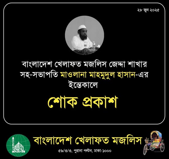 বাংলাদেশ খেলাফত মজলিস জেদ্দা শাখার সহ-সভাপতি মাওলানা মাহমুদুল হাসান (রহ.)-এর ইন্তেকালে শোক প্রকাশ।
