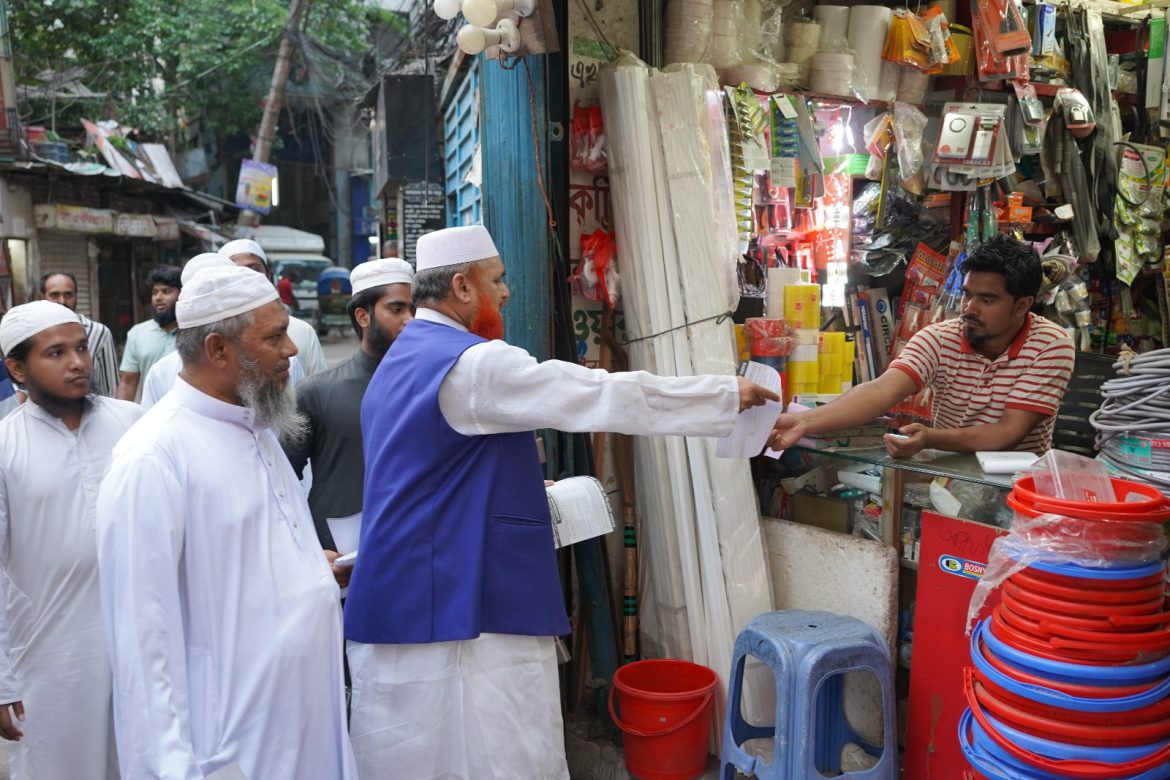 বাংলাদেশ খেলাফত মজলিস, ঢাকা মহানগর দক্ষিণের উদ্যোগে আয়োজিত এই লিফলেট বিতরণ কর্মসূচির নেতৃত্ব দেন দলের যুগ্ম মহাসচিব তোফাজ্জল হুসাইন মিয়াজী।
