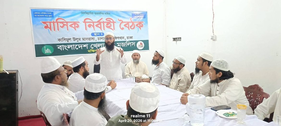 আজ (২০ এপ্রিল, সোমবার) বাদ এশা চালাবন কাসেমুল উলুম মাদ্রাসা মিলনায়তনে বাংলাদেশ খেলাফত মজলিস দক্ষিণখান থানা শাখার মাসিক নির্বাহী বৈঠক অনুষ্ঠিত হয়।